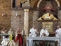 Szafirowy (45) Jubileusz kapłaństwa ks. kan. Bogumiła Stachowiaka Ks. Jubilat przewodniczy uroczystej koncelebrze w nowym złotym ornacie. Ołtarz jest przykryty obrusem przywiezionym przez nasze Siostry z Indii. Kapłani naszego domu ofiarują Mszę św. w intencji Jubilata /18 VI 17/.