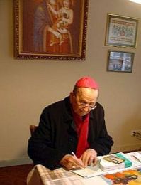 W swoim pokoju pod Obrazem, który na 50-lecie kapłaństwa otrzymałem z rodzinnej parafii z Wysokiej. (Jest to kopia łaskami słynącymi Obrazu Matki Bożej Różańcowej).